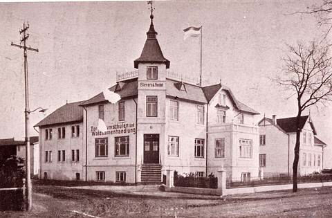 Altonaer Straße 81, Ecke Hallstraße, "Forstbaumschulen und Waldsamenhandlung Sievers & Heubel" so steht es an der Hauswand, später war es die Baumschule Matthias Ostermann. Das Eckhaus wurde im Zuge des Ausbaus der B5 zur A23 im April 1984 abgebrochen. Herkunft:Heimatverein Rellingen