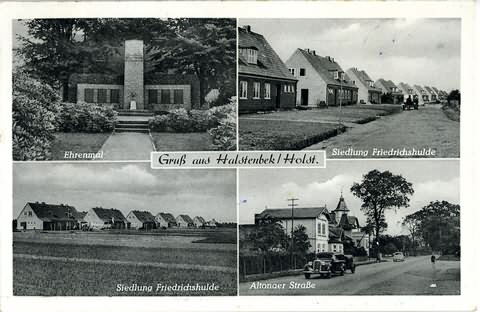 Altonaer Straße in der Teilansicht . . .... unten-rechts:Altonaer Straße, links das Haus 77, Viehhändler- Fuhrgeschäft August Wittern, anschließend Haus 81 Baumschule Ostermann, vormals Heubel.Poststempel vom 11.12.1958Herkunft:Sammlung Krohn.