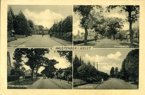 Altonaer Straße in den Teilansichten . . . oben-rechts:Altonaer Straße, B5 und spätere A23. unten-links:Altonaer Straße in Höhe der Baumschule Ostermann vormals Heubel mit Blick in Richtung Rellingen mit dem Gasthof Jürgensen. Herkunft:Sammlung Krohn