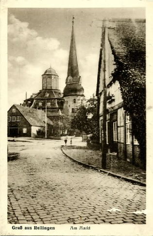 Am MarktBlick “von Schmidt's Weinstuben” auf Kirche und “Zimmerei Stoldt”. Herkunft:Sammlung Nönchen