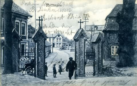 Am Markt Blick von der Kirche auf den Markt mit Pumpenportal; alte Kirchtreppe mit 4 Pfosten, links "Bäcker-Meyer", dahinter "Hof-Kröger", im Hintergrund Haus-Nr.9 "Ballhaus Nönchen" und das Pumpenportal. Aufnahme von Hermann Möller. Herkunft:Sammlung Hoyer