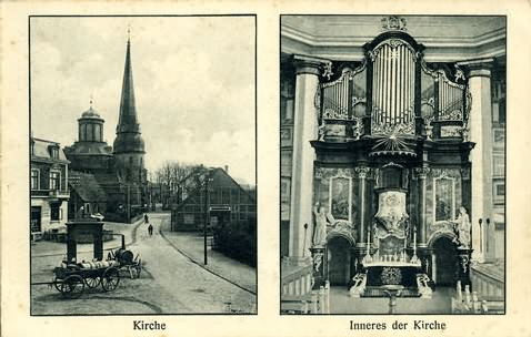 Am Markt in der Teilansicht . . .... links: Blick auf die Kirche mit Haus-Nr.11 und Pumpenportal.Herkunft:Heimatverein Rellingen