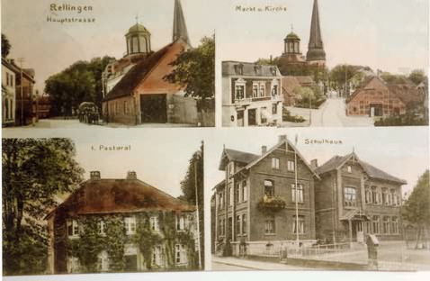 Am Markt in der Teilansicht . . .... oben-rechts:Blick auf Markt und Kirche.Herkunft:Heimatverein Rellingen