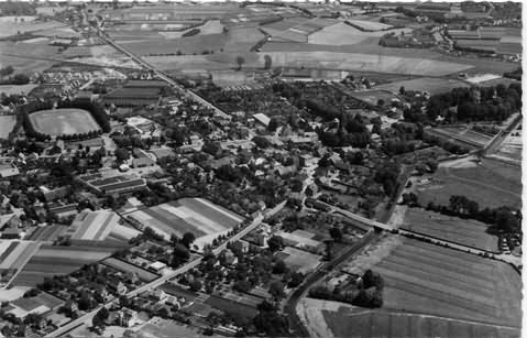 AppelkampDer Appelkamp beginnt unmittelbar hinter dem oben links liegenden Sportplatz. Das 1957 seiner Bestimmung übergebene neue Postgebäude ist vorhanden die ausgebaute B5/A23 noch nicht, also um 1960.Herkunft:Sammlung Miller