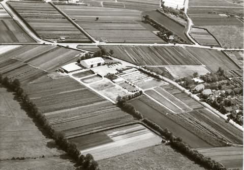Baumschule Hans Miller Luftaufnahme der Baumschule Hans Miller, Tangstedter Straße 95. Der Baumschulenweg führt im oberen Drittei parallel zum oberen Bildrand, oben rechts zweigt die Straße "Am Schippels" ab. Aufnahme von 1968, Herkunft:Sammlung Miller
