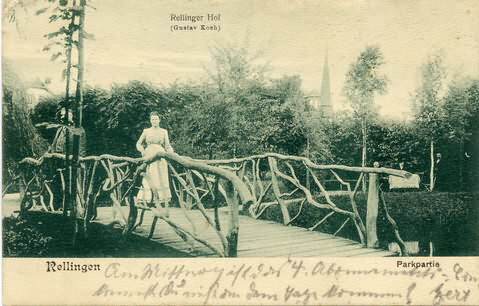Ehmschen1Im Park der Gastwirtschaft "Rellinger Hof". Der Rellinger Hof wurde von J. Pein erbaut, Besitzer-, Pächterfolge:J.Pein, Gustav Koch, F.Peters, W.Heimig, W.Kunstmann.Poststempel vom 2.8.1909Herkunft:Sammlung Miller