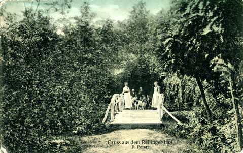 Ehmschen 1Im Park der Gastwirtschaft "Rellinger Hof". Der Rellinger Hof wurde von J. Pein erbaut, Besitzer-, Pächterfolge:J.Pein, Gustav Koch, F.Peters, W.Heimig, W.Kunstmann.Poststempel vom 5.9.1916.Herkunft:Sammlung Schleyer