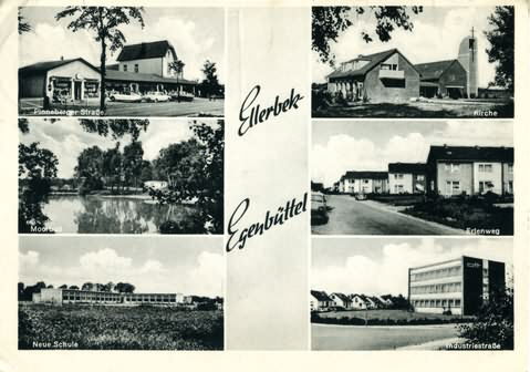 Erlenweg, Egenbüttel, in den Teilansichten . . .... rechts in der Mitte: Reihenhäuser am Erlenweg.Aufnahme um 1965?