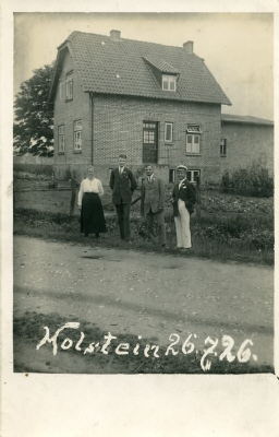 Gärtnerstraße 37 Fotopostkarte der Familie Schmidt vor dem eigenen Haus. 2005 ist es in der 3. Generation in der Familie. Schmidt und ab 1998 Firmensitz der Naturstein- Vertrieb- Nord- Schmidt. Weiterführende Informationen unter Natursteinvertrieb- Nord www.nvn.de Aufnahme vom 26.7.1926. Herkunft:Heimatverein Rellingen