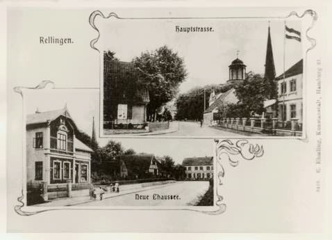 Hamburger Straße 4 in der Teilansicht . . .unten:”Kaffee-Dittmer". Die Straße wird noch "Neue Chaussee" genannt, sie wurde um 1905 erbaut. Herkunft:Heimatverein Rellingen