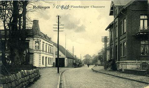 Hauptstraße 31, 38Hauptstraße, Blick von der Kirche in Richtung Rathaus, links Einmündung Kirchenstraße mit "Rellinger Hof", Hauptstraße 31. Rechts das "Lehrerhaus", Hauptstraße 38.Poststempel vom 13.4.1910Herkunft:Sammlung Miller