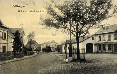 Hauptstraße 80 . . . Standpunkt Hauptstraße/ Ecke Tangstedter Chaussee mit Blick zur Lohe. Rechts Haus-Nr.80 "Gasthof zur deutschen Eiche" von Hermann Mähl > Martha Mähl, die Durchfahrt/ Ausspann ist noch nicht ausgebaut. Danach Haus-Nr.82 Suhrke > Rosenapotheke und Haus-Nr. 84, 86. Poststempel von 16.2.1912 Herkunft:Heimatverein Rellingen