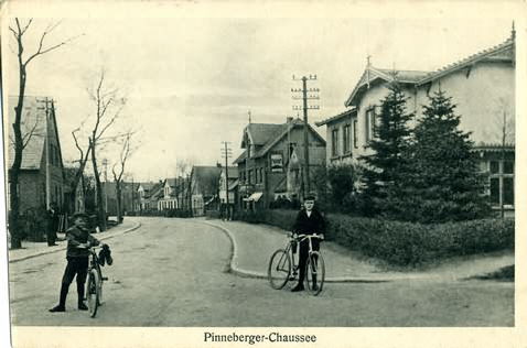 Hauptstraße 82 - 96 Standpunkt Hauptstraße/ Ecke Lohe , Blick in Richtung Pinneberg. Rechts die Haus-Nr.82, Zimmerer Pein > Suhrke > Rosenapotheke bis zum Baumschulenweg. Baustein für den Bau der Turnhalle des Rellinger Turnverein von 1900 13. Juli 1924. Herkunft:Heimatverein Rellingen