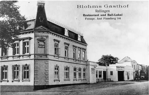 Kirchenstraße, Ecke Hauptstraße 31Links vom Restaurant und Ball-Lokal “Blohms Gasthof” > "Rellinger Hof", beginnt die Kirchenstraße.