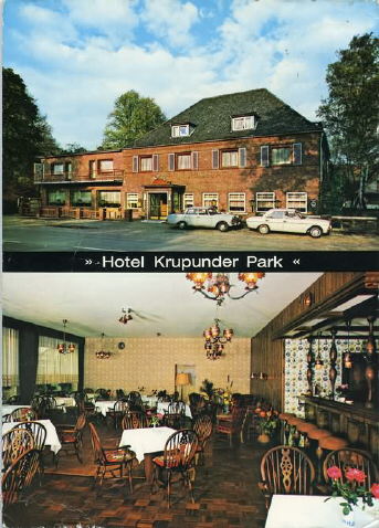 Krupunder, Altonaer Straße 325, 2 Teilansichten, oben: Hotelaußenansicht; unten: Saal, Text vorn:Hotel Krupunder Park; Text hinten:Hotel - Restaurant - Cafe Krupunder Park Besitzer Robert Hinz 2084 Rellingen - Krupunder Altonaer Straße 325 Telefon (04101) 3 12 85 Herrliche Lage am Krupunder See Ideale Räume für Konferenzen, Betriebs- und und Familienfeiern von 25 bis 500 Personen; Ditzen & Co Bremerhaven; Poststempel 4.7.1972; Herkunft:Sammlung Miller