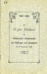 Militärische Brüderschaft von Rellingen und Umgebung, 25 jähr. Jubelfeier 1883 - 1908, 8 Seiten Den gesamten Text dieser “Jubelfeier” finden Sie hier. Herkunft:Heimatverein Rellingen