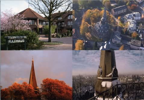 Luftbilder in den Teilansichten ... ... oben-rechts:Herbstliches Luftbild der Kirche mit Hauptstraße und Markt (dasselbe Motiv wie arel0450); unten-links: Kirche im herbstlichen Licht nach einem Gewitter (dasselbe Motiv wie arel0453); unten-rechts:Blick von der Kirchenlaterne in Richtung Thesdorf und Ehmschen. Foto:Gaedigk-Fotostudio. Aufnahmen von 2005. Herkunft:Sammlung MIller