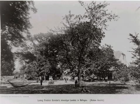 Hauptstraße 17, Ludwig Friedrich Schröder's ehemaliger LandsitzAnsicht aus dem Park in Richtung Heilanstalt. Aufnahme von 1895.Herkunft:Heimatverein Rellingen
