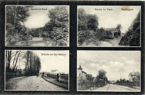Hauptstraße 17, Park Dr. Ofterdinger in der Teilansicht . . .... oben-links: Partie im Park, ... oben rechts: Partie im Park. Poststempel vom 4.2.1916.Herkunft:Heimatverein Rellingen