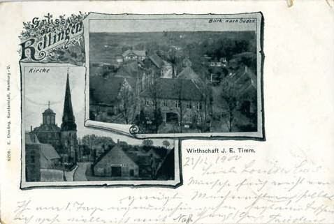 Hauptstraße 17, Park Dr. Ofterdinger in der Teilansicht . . . ... oben: Blick vom Kirchturm auf die Hauptstraße in Richtung Süden, im Vordergrund die Gastwirtschaft “Zum alten Gasthaus”, dahinter die Anstalt Dr. Ofterdinger. Poststempel vom14.12.1900. Herkunft:Sammlung H.Hoyer