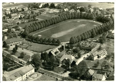 Ratsweg Der Ratsweg ist eine Sackgasse und verläuft an der jetzigen Gemeindebücherei, Hauptstraße 58, und dem Sportplatz vorbei in Richtung Schmiedestrasse. Diese Sackgasse wird von den Familien Emil Hatje und Hermann Meyer, Ratsweg 2, zunächst als Privatstraße gebaut und 1958 an die Gemeinde übergeben. Aufnahme um 1958. Herkunft:Heimatverein Rellingen
