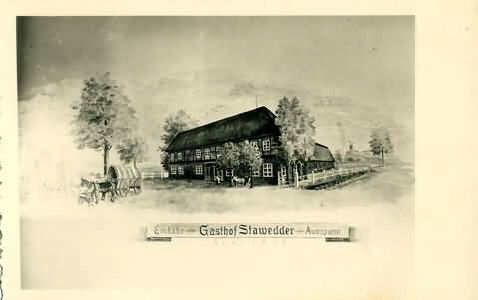 Stawedder 17 - 21 Gastwirtschaft Stawedder, 2005 befindet sich an dieser Stelle der Autohof Reimers. Stawedder hat viel gesehen, die hier ansässige Viehhandlung Kröger diente dem Tierpark Carl Hagenbek als Quarantänestation für frisch importierte Tiere. 1913 startete und landete der Flugpionier Wilhelm Krumsiek erfolgreich von den Stawedderwiesen mit seinem Motorflugzeug. Nach dem 2. Weltkrieg errichtete der Omnibusbetrieb Reimers seine Zentrale bevor es als PVG nach Schenefeld zog. Herkunft:Sammlung Nönchen